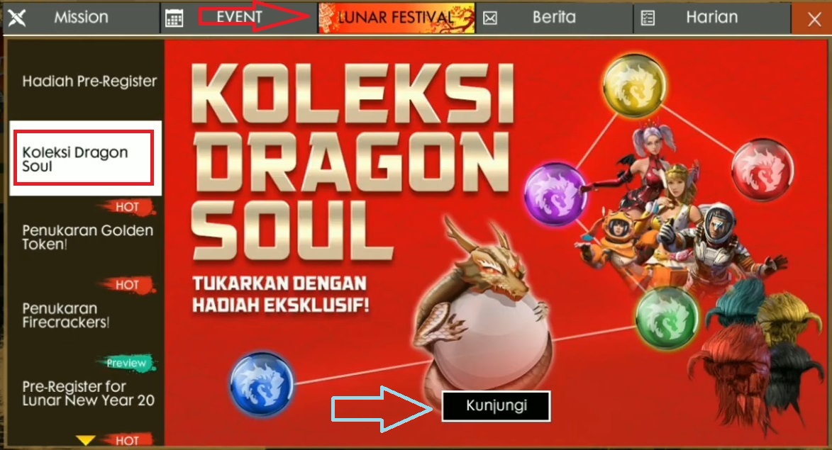 Free fire lunar festival dragon soul. Alem disso explicarei também o novo evento dragon soul e mostrarei a nova skin de granada do evento lunar. Cara redeem untuk mendapatkan hadiah event dragon soul free fire ff terbaru 2019 pada tanggal 3 januari 2019 masih dalam lunar festival free fire menghadirkan event baru yaitu dragon soul dengan berbagai maca hadiah menarik di dalamnya. Cara mendapatkan hadiah di dragon soul free fire event 2019. Baru baru ini free fire telah menghadrikan event lunar festival yang salah satunya terdapat even dragon soul free fire. Dragon soul blue free fire merupakan salah satu game yang saat ini menduduki peringkat game terpopuler paling atas yang mana sebelumnya peringkat tersebut diduduki oleh game buatan moonton yaitu mobile legends namun sekarang ini sudah tergeser oleh game dari garena yaitu free firesekarang ini game free fire sendiri sedang banyak sekali event event menarik yang tentunya bisa kalian. Dragon soul free fire event free fire 2019 terbaru 519 pm game dragon soul free fire event free fire 2019 terbaru berbicara tentang event free fire mungkin hampir tidak ada habisnya dalam postingan kali ini admin membawa informasi besar untuk anda para pemain setia game free fire karena sekarang terdapat sebuah event koleksi dragon soul free fire yang akan mendapatkan hadiah yang menarik.