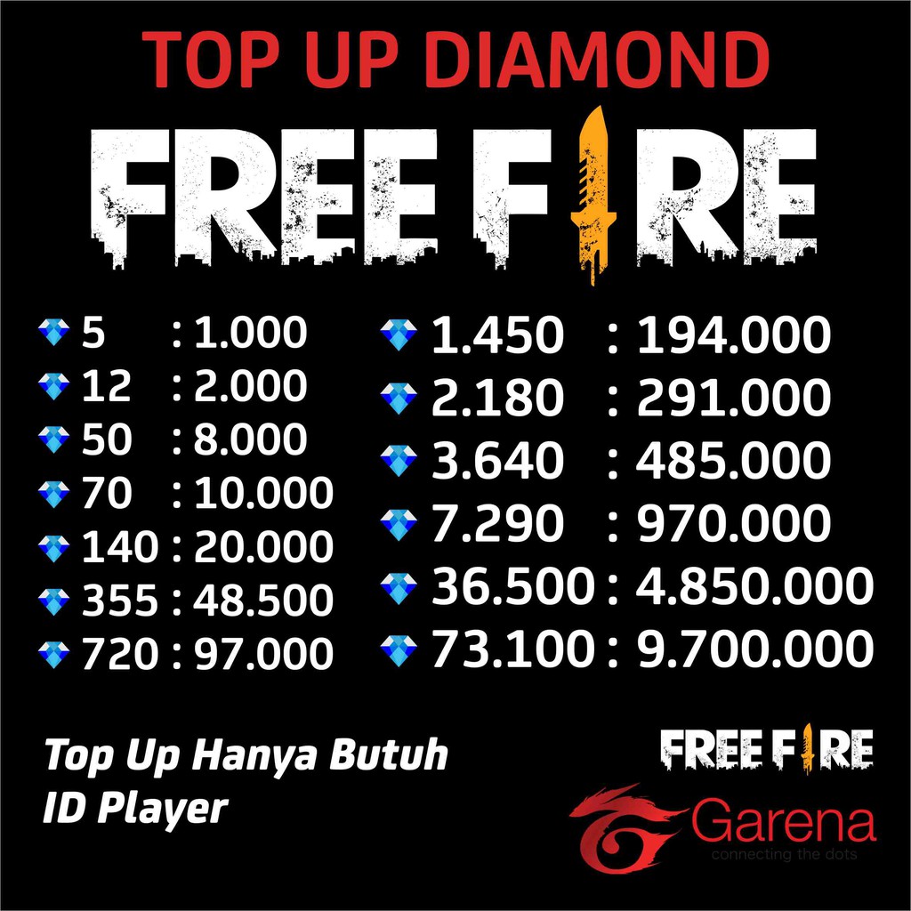 Free fire adalah game third person shooter dalam bentuk battle royale yang di luncurkan oleh sebuah platform asal singapura yaitu garena. Kode keterangan harga status kode deskripsi harga. Jenis produk provider nominal harga status. Sebagai salah satu game battle royale yang sedang di gandrungi masyarakat free fire telah menjadi mobile game nomor 1 di 22 negara serta top 5 mobile games di lebih dari 50 negara. Free fire 5 diamond free fire 5 diamond. 3000 member 2750 reseller beli.