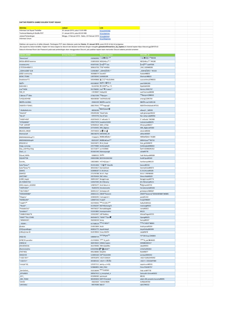Turnamen golden ticket free fire. Didukung oleh telkomsel dunia games berhasil menyelenggarakan turnamen yang sangat meriah. Berada di grand final dari golden ticket yang diperolehnya pada free fire master league season i yang diselenggarakan garena free fire menjadikan mereka the master pada free fire indonesia master 2020 spring kali ini dengan perolehan jumlah poin 1370 dalam 6 match onic olympus berhasil membawa pulang piala dan uang tunai 350 juta dan akan menjadi 1 tim yang mewakili indonesia di kancah. Telkomsel pada gelaran grand final dunia games golden ticket 2019 rrq hades berhasil meraih predikat juara 1 dan berhak mendapatkan 1 golden ticket menuju turnamen free fire indonesia master season 2 sekaligus berpeluang untuk bisa mengikuti kompetisi free fire world cup 2020. Ekosistem esports free fire sendiri terbilang sudah sangat kuat di indonesia. Dunia games golden ticket merupakan turnamen yang diadakan oleh dunia games untuk kamu para pemain free fire. Turnamen yang mempertandingkan mobile games free fire tersebut diikuti lebih dari 4000 tim yang berasal dari berbagai daerah di tanah air untuk memperebutkan satu golden ticket menuju turnamen bergengsi free fire indonesia master season 2 sekaligus total hadiah senilai rp300 juta.